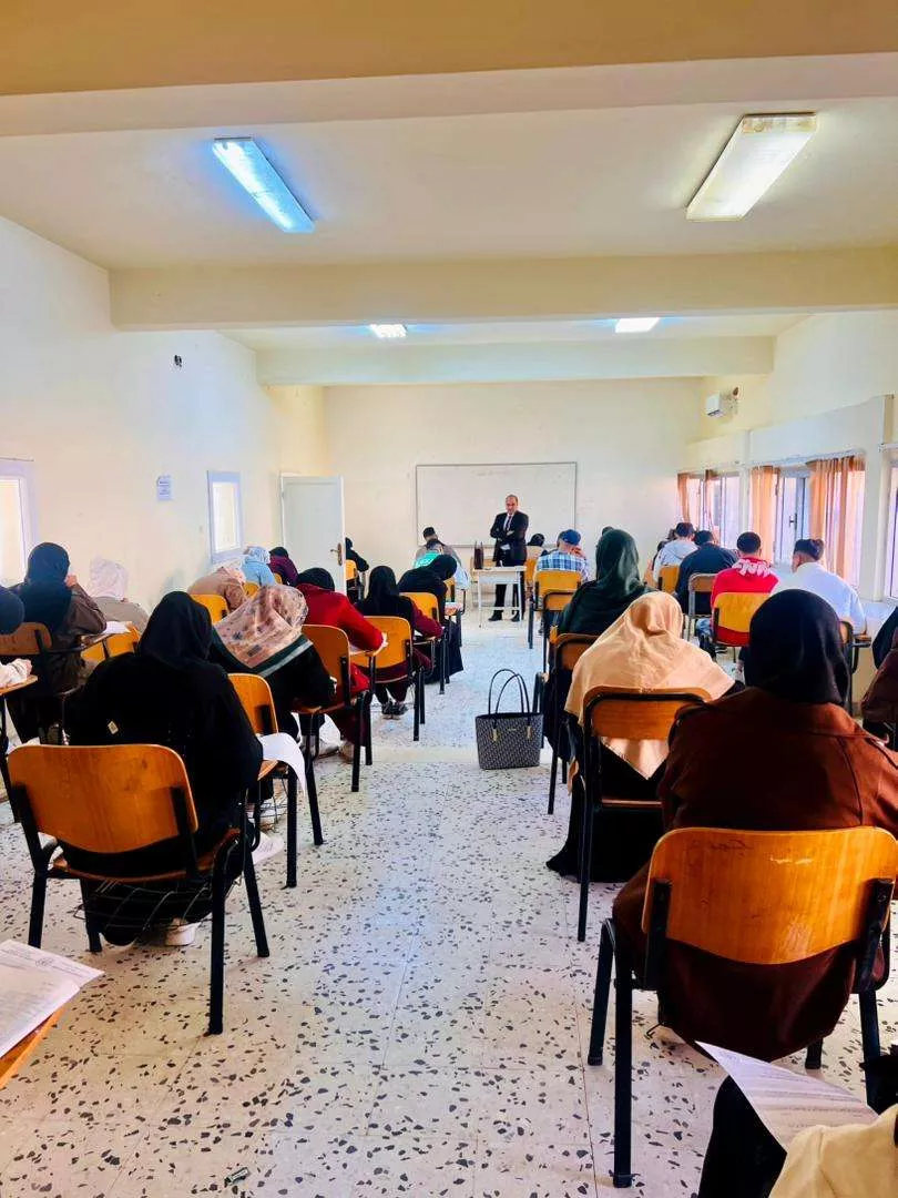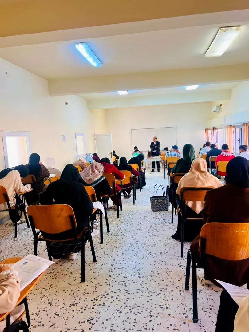 وقد سادت قاعات الامتحان أجواء أكاديمية هادئة ومفعمة بالنشاط، عكست حرص الكلية على توفير بيئة مناسبة تضمن تكافؤ الفرص بين الطلبة، وتُعزز من قيم الانضباط والنزاهة العلمية.