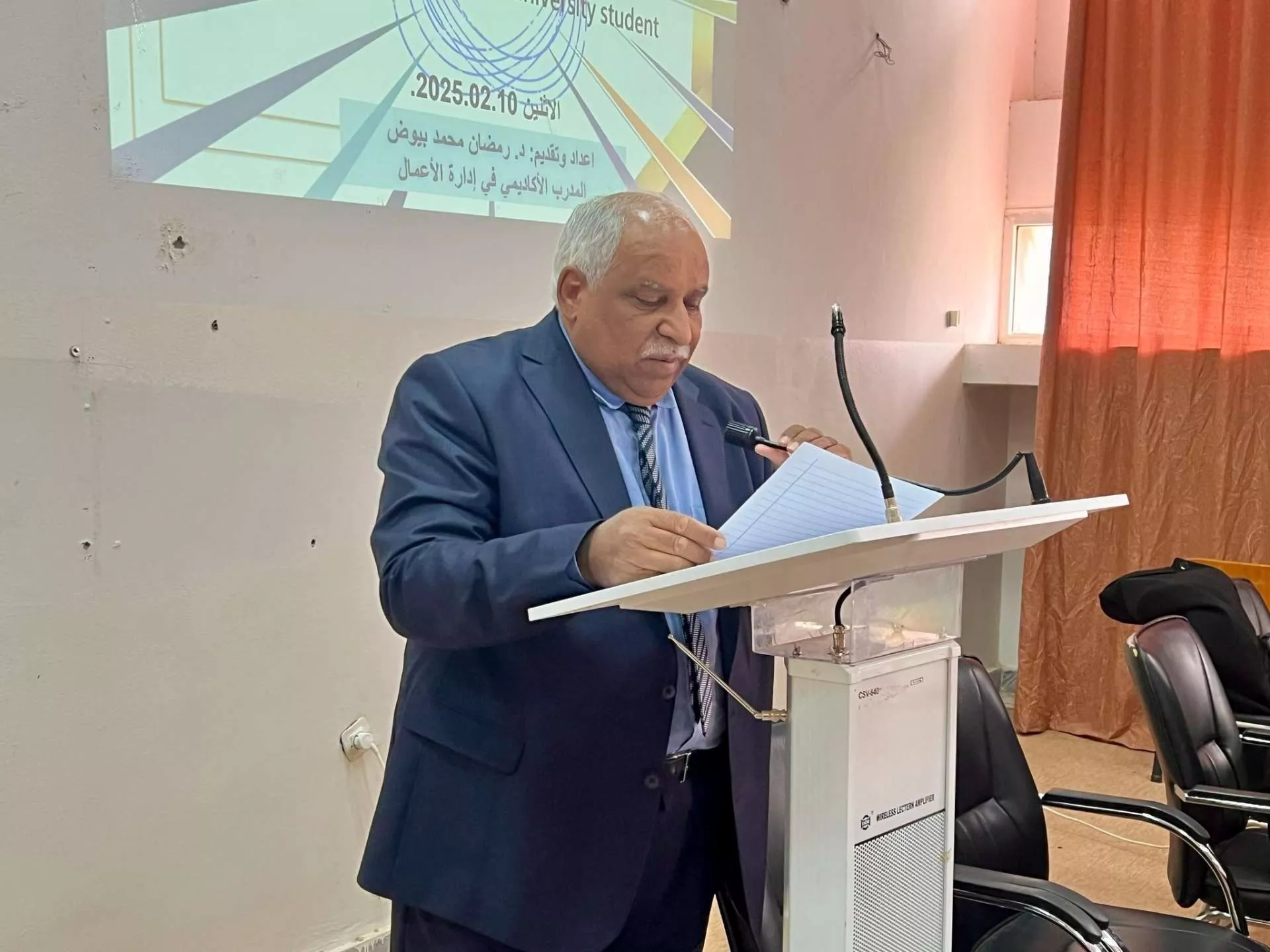 وفي ختام الورشة قام السيد عميد الكلية #بتكريم الدكتور رمضان محمد بيوض وتسليمه #شهادة_شكر_وتقدير نضير حضوره و جميل عطائه.